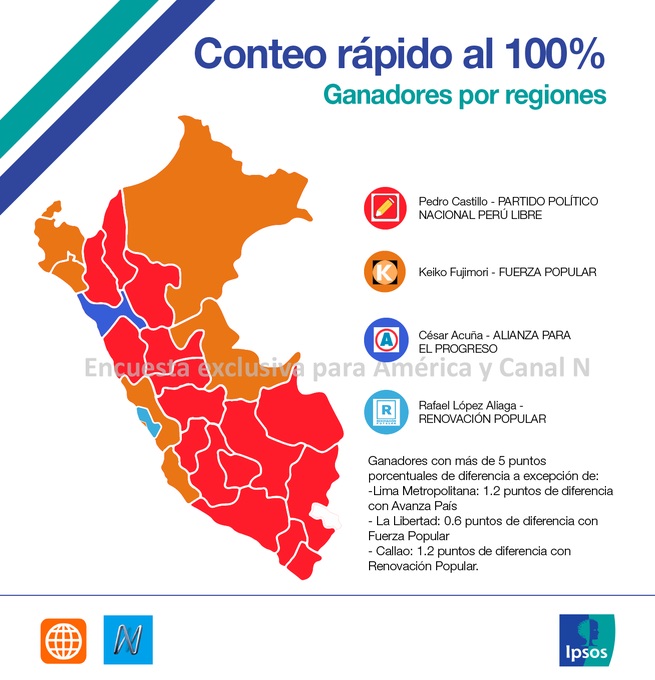 La sorpresa —si es que se le puede decir así—respecto a los resultados solo fue en Lima y en las grandes ciudades de la costa, en el resto del país la cosa estaba clara se debía cerrar filas por Castillo convencidos de que su plataforma de izquierda radical revierta la situación de desigualdad y pobreza y que los candidatos del espectro de la derecha no vieron nunca venir el tsunami Castillo, preocupados estaban más bien por Veronika Mendoza y cuando lograron reaccionar, solo fue para ver que Castillo pasaba a segunda vuelta. La lección que le queda a la derecha peruana es que buscó cerrarle el paso a la centro izquierda o izquierda progresista de Mendoza y le dejaron la cancha libre a Castillo y ahora han despertados todos sus peores miedos.